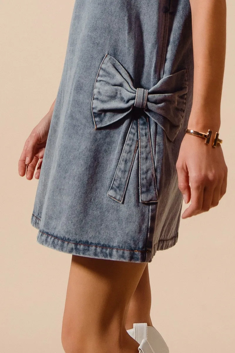 SO ME Bow Ribbon Knot Applique Denim Mini Dress