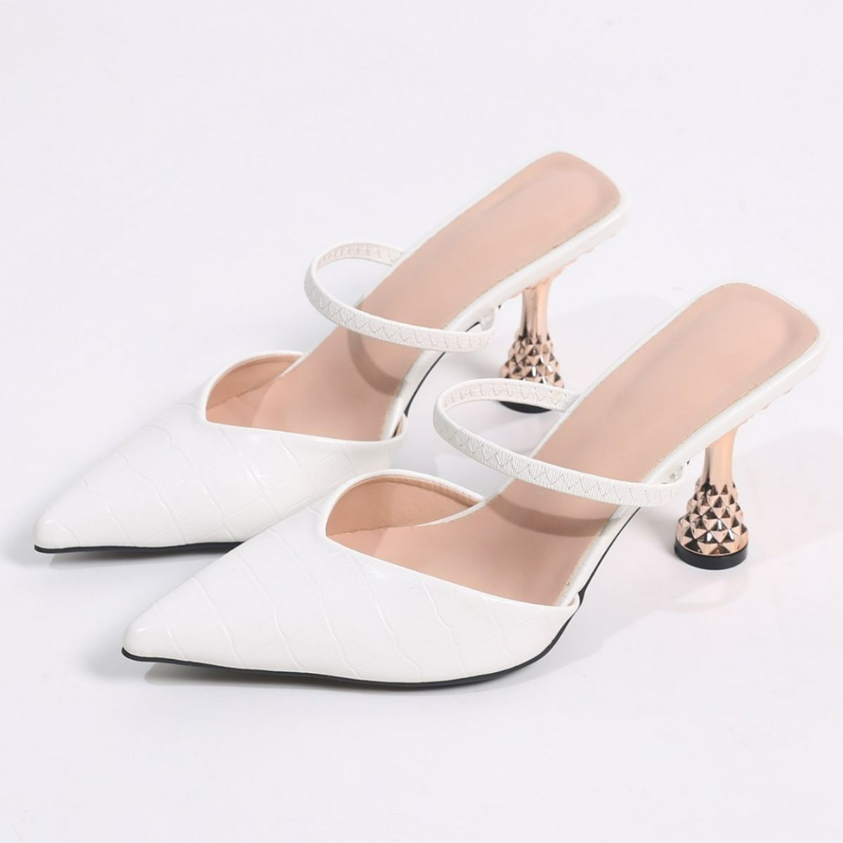 Strukturierte Pumps mit spitzer Zehenpartie und mittelhohem Absatz