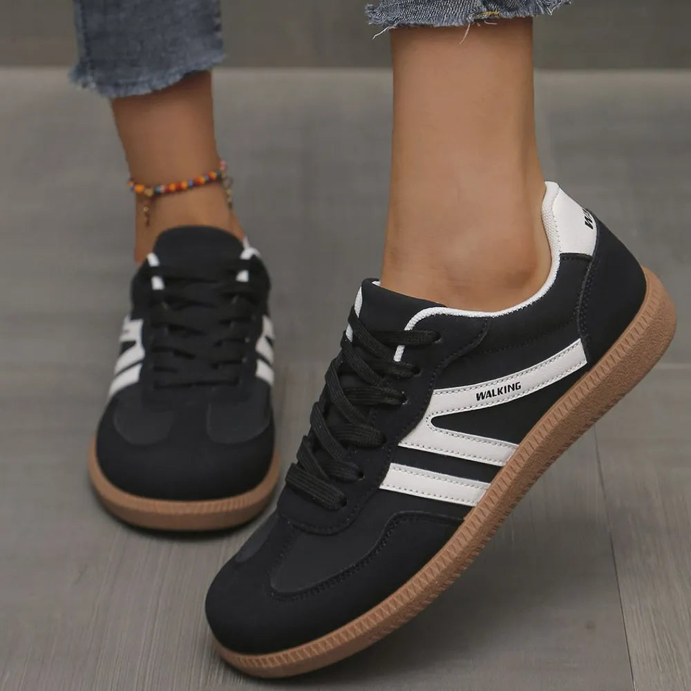 Contrast Round Toe Lace Up Sneakers