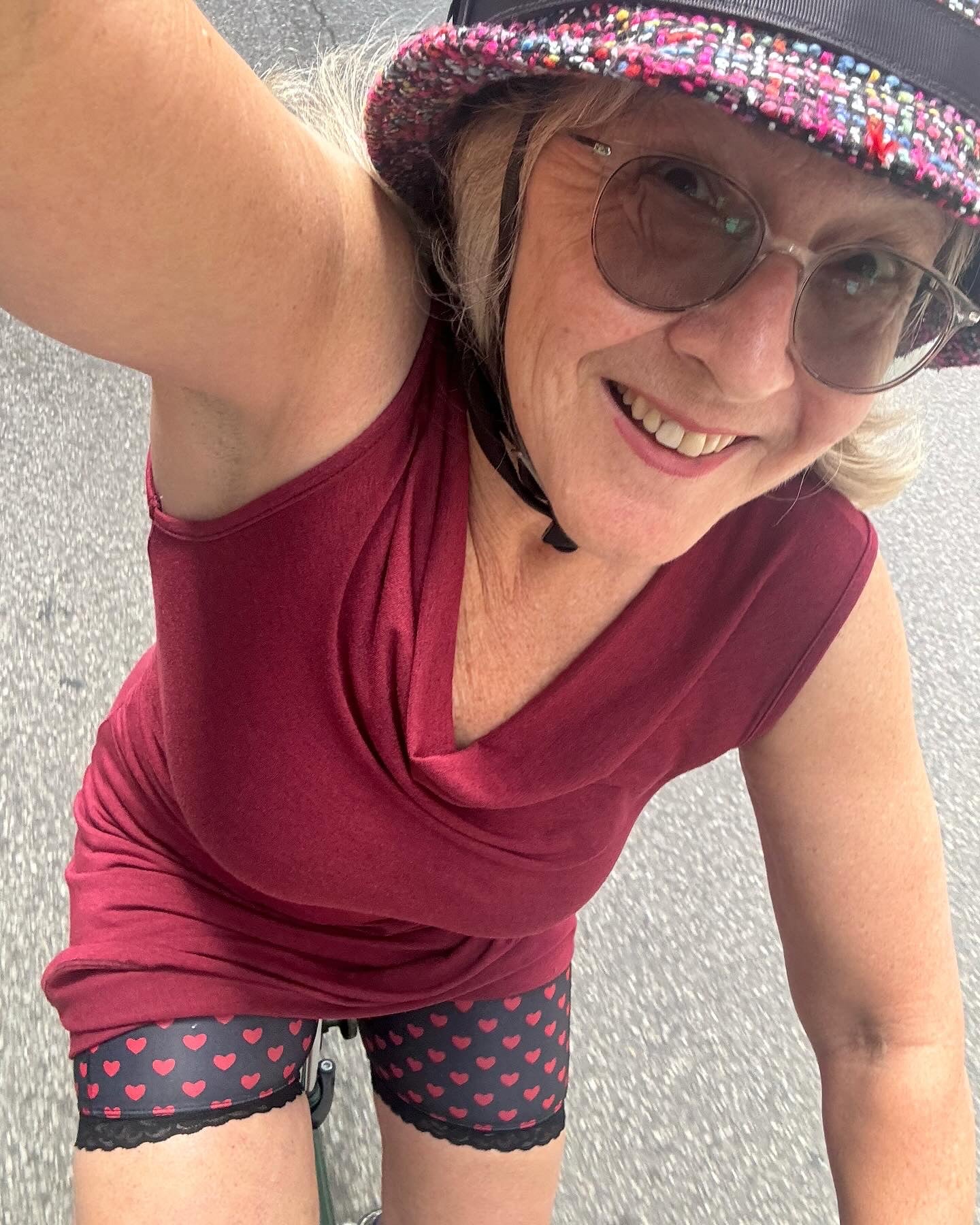 You love biking, and biking loves you! Feel the love with red hearts on a black background. The black stretch lace at the hem and waistband finish the look with a hint of old-fashioned femininity. New lace made in 2023 provides greater durability.