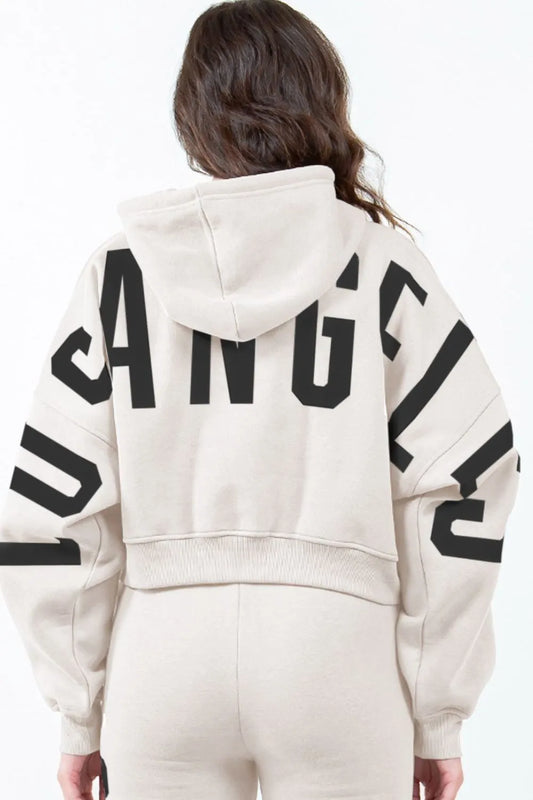 American Bazi Letter Graphic Long Sleeve Drawstring Cropped Hoodie