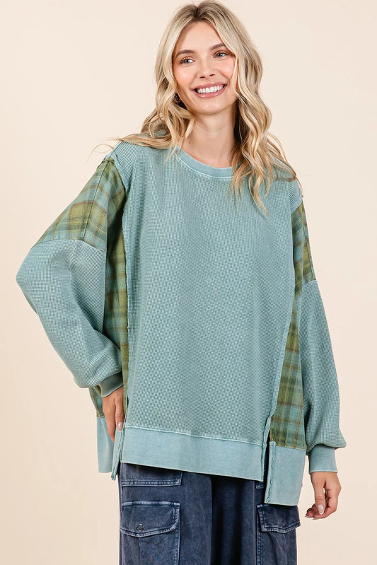 Mittoshop Plaid Panel Mineral Wash French Terry Sweatshirt