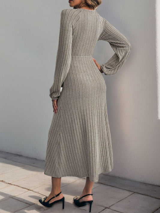 Perfee Ribbed Tied Surplice Long Sleeve Dress