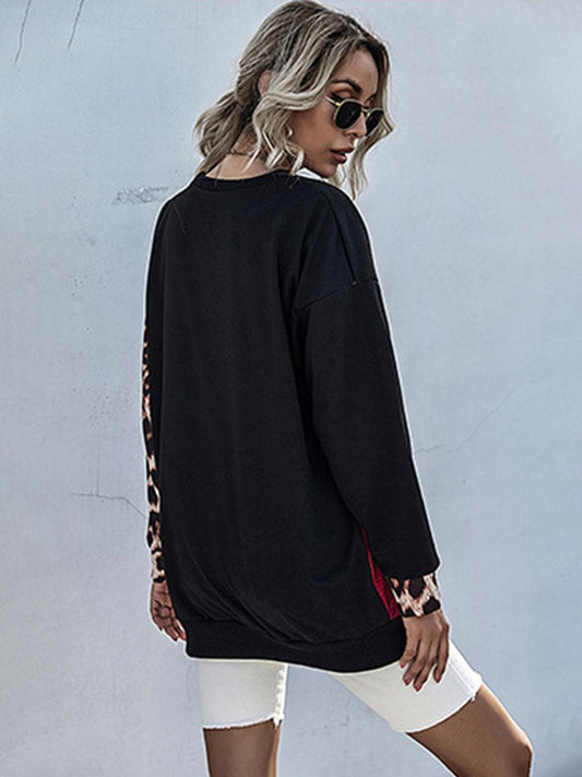 Perfee Leopard Contrast Long Sleeve Sweatshirt