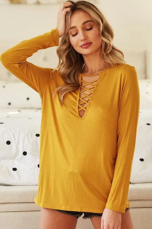 BiBi Jersey Knit Top with Criss Cross Front Neck Detail
