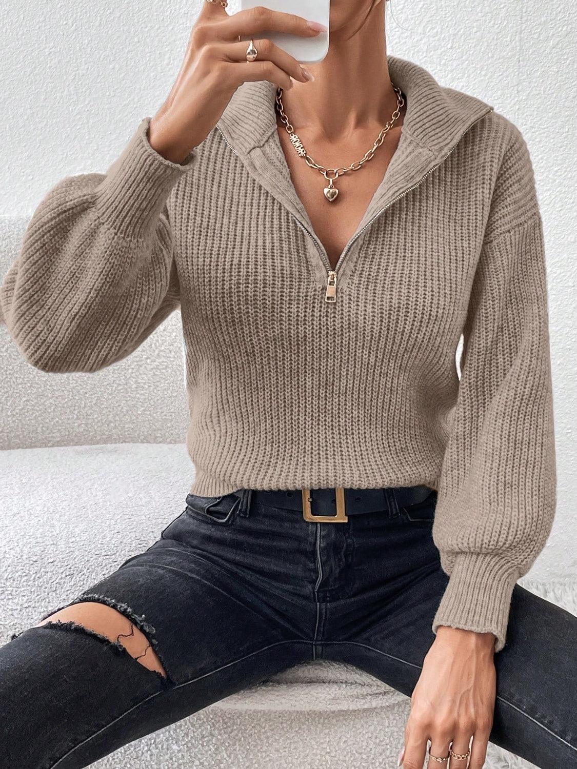 Honey Half Zip Dropped Shoulder Sweater