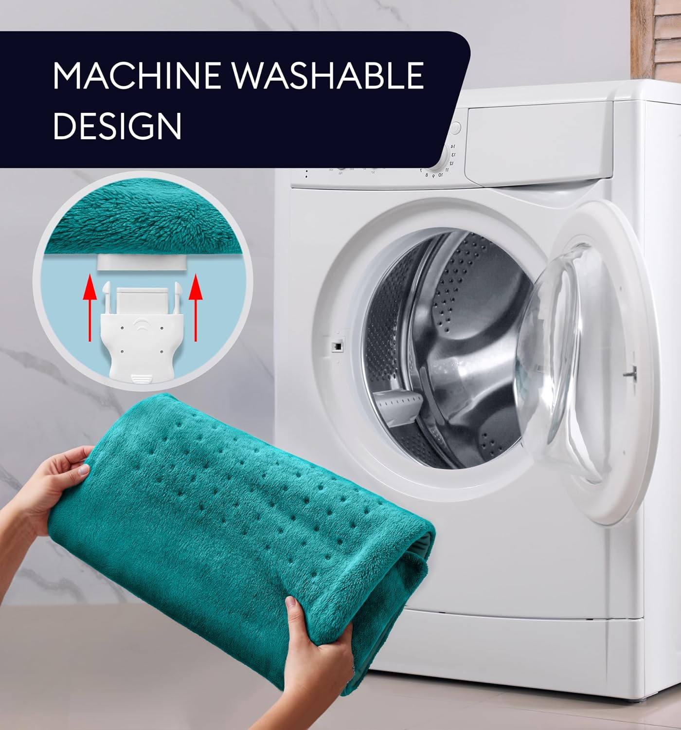 EASY MAINTENANCE: Super easy to clean, our heating pad for bed is machine washable. Simply unplug and toss right in for a thorough cleansing before next use! You can also spot clean using a damp washcloth with mild detergent. Sanitizing has never been easier! The heating pad auto shut-off ensures your peace of mind after each use. No need to worry about forgetting to unplug!