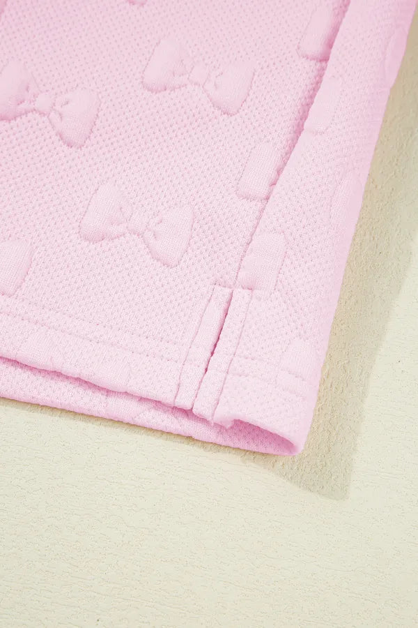 Bow Jacquard Ruffle Cap Sleeve Top and Shorts Set