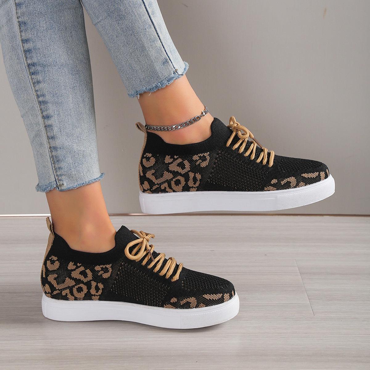 Lace-Up Leopard Flat Sneakers