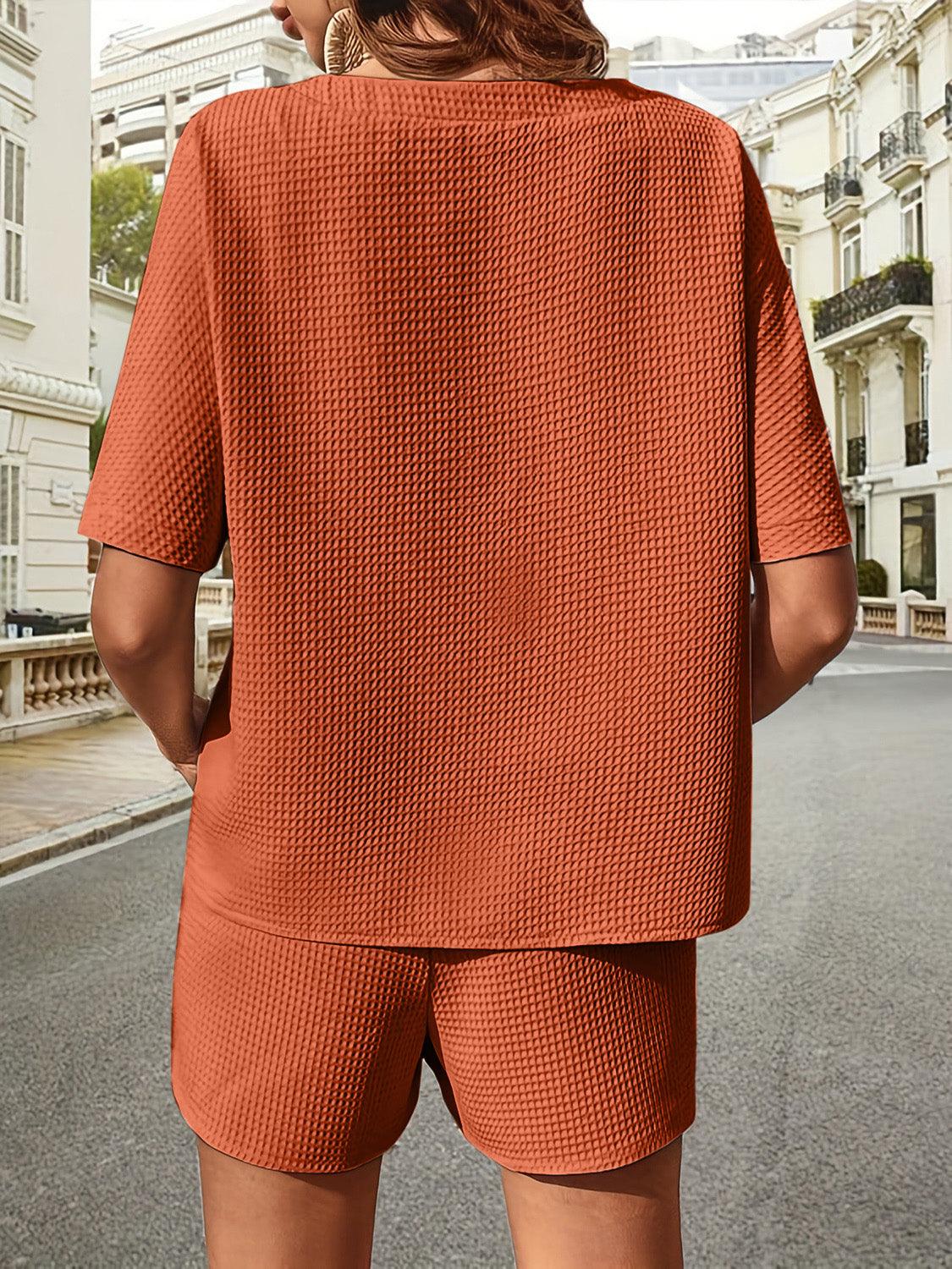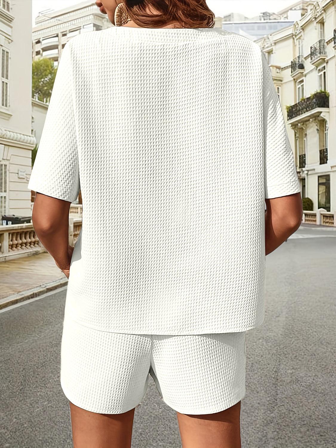 Waffle-Knit Half Sleeve Top and Shorts Set