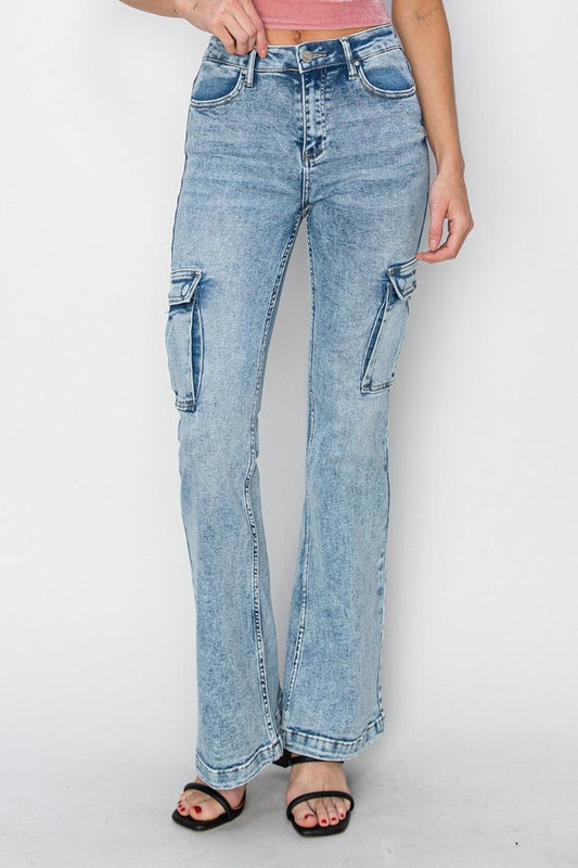 RISEN Full Size High Rise Wide Leg Cargo Pocket Jeans