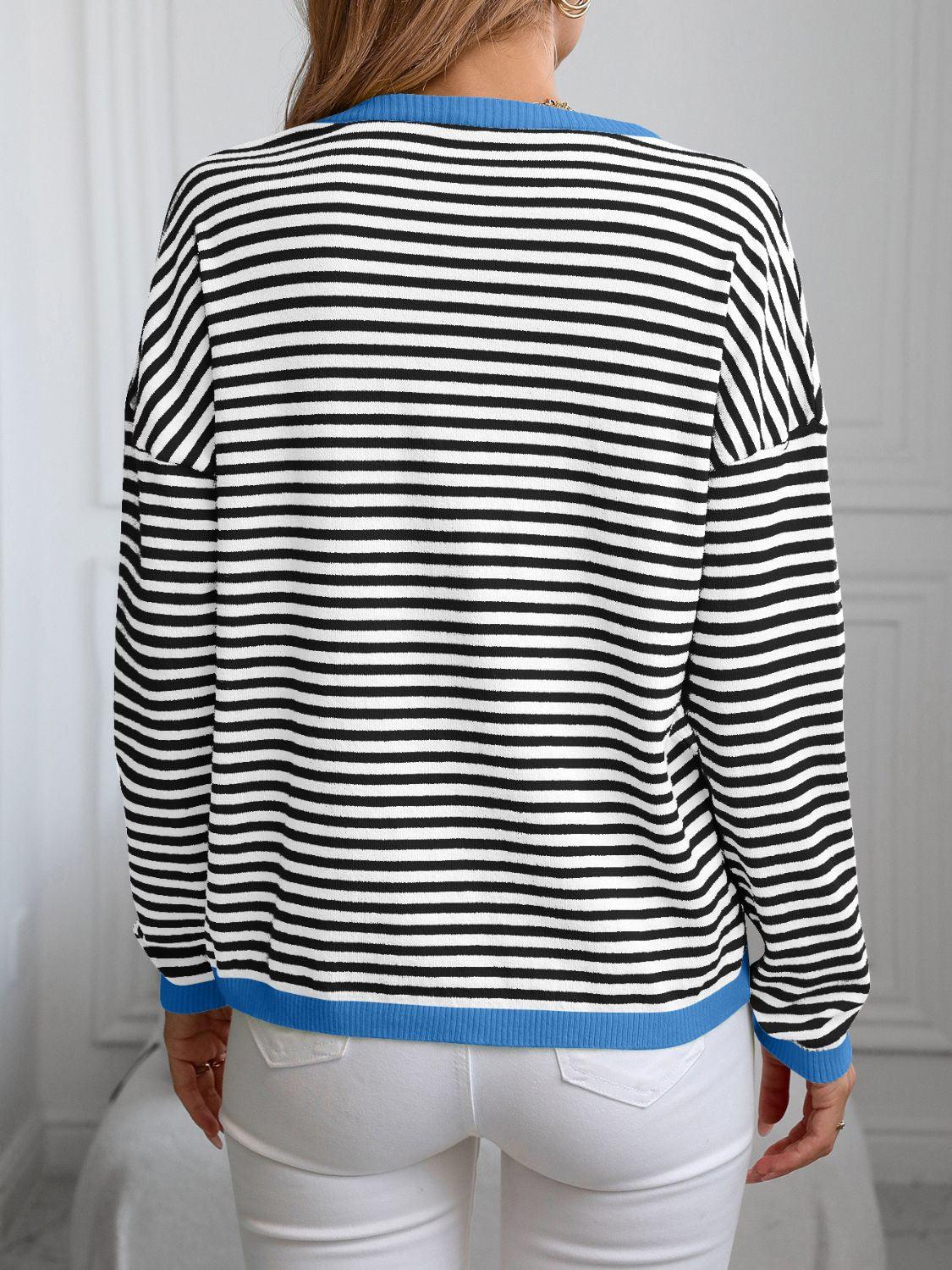 Contrast Trim Striped V-Neck Long Sleeve Knit Top