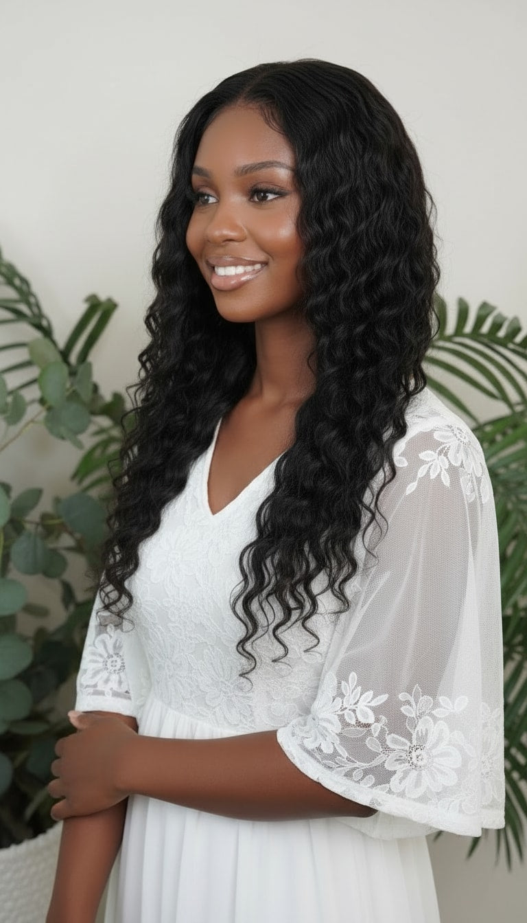 Achieve a naturally defined look with our Deep Wave Double Drawn Wefted Bundle — soft, full, and luxuriously bouncy.