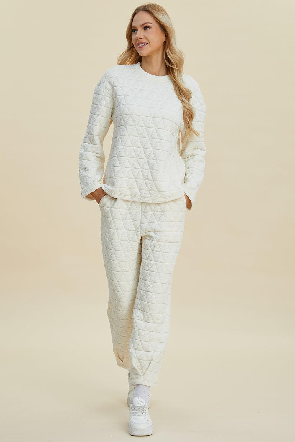 Double Take Full Size Texture Round Neck Long Sleeve Top and Pants Set