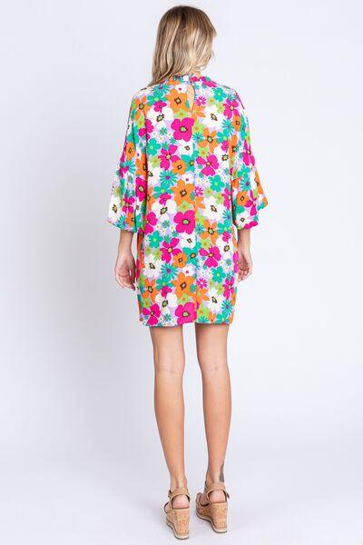 GeeGee Full Size Floral Round Neck Lantern Sleeve Mini Dress