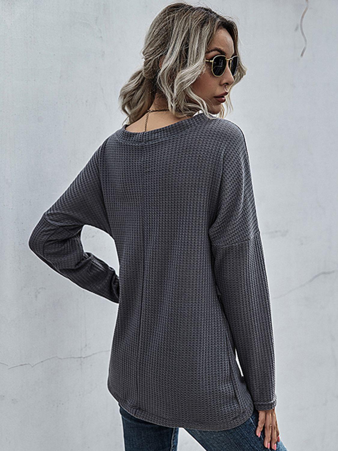 Perfee Waffle-Knit Surplice Long Sleeve Top