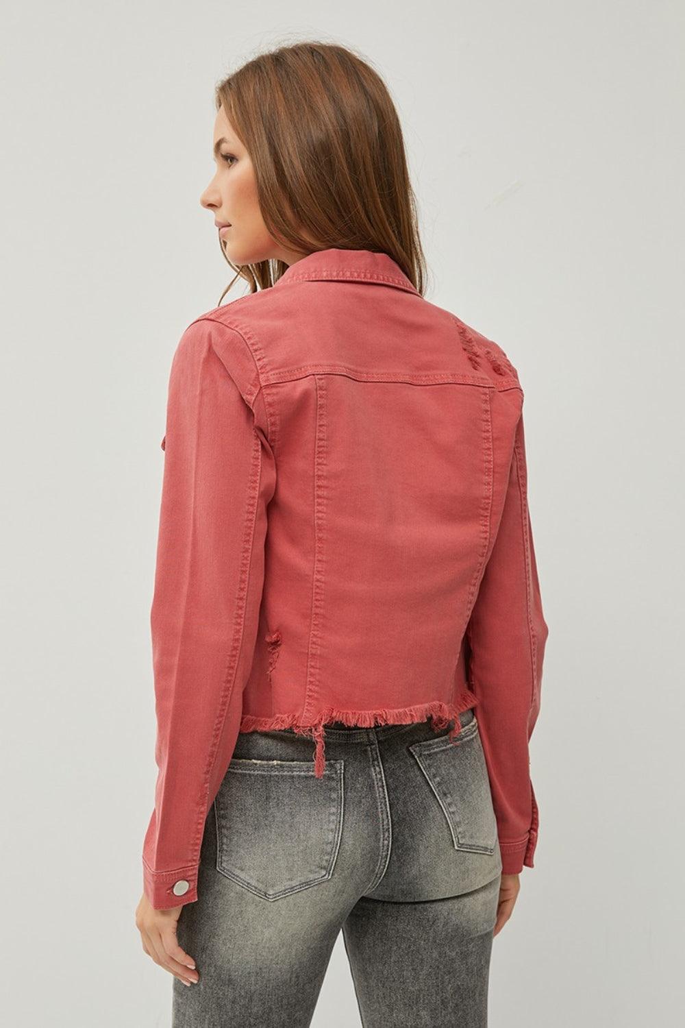 RISEN Raw Hem Button Up Cropped Denim Jacket