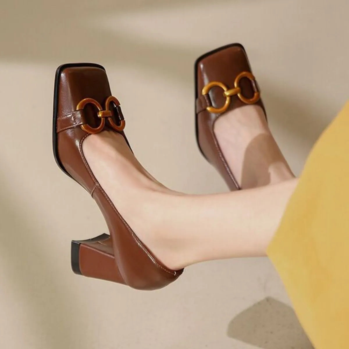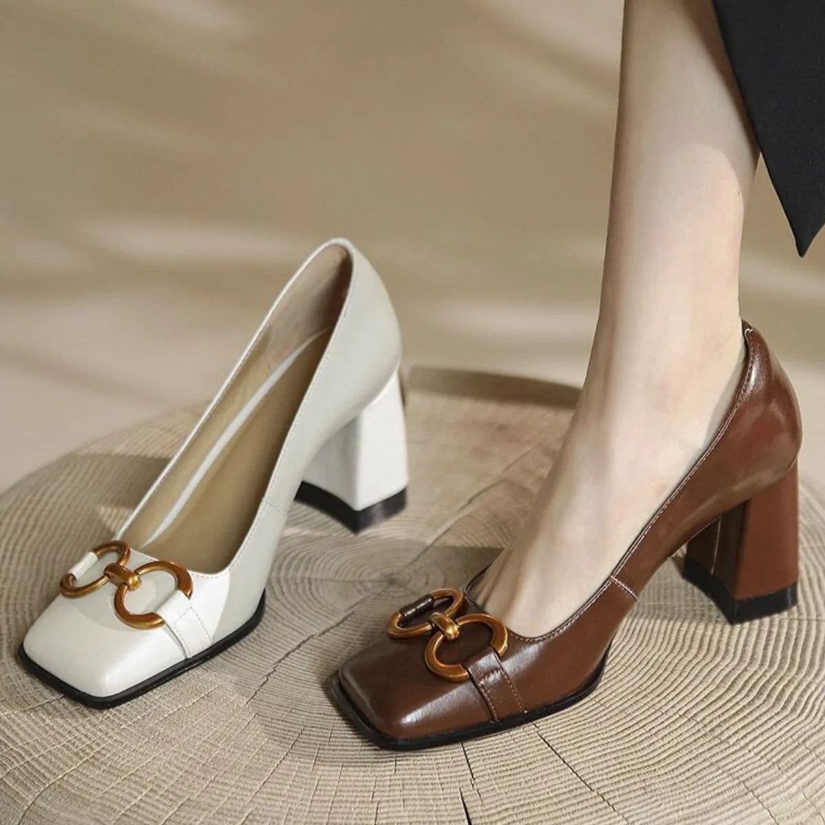 Square Toe Block Heels Pumps