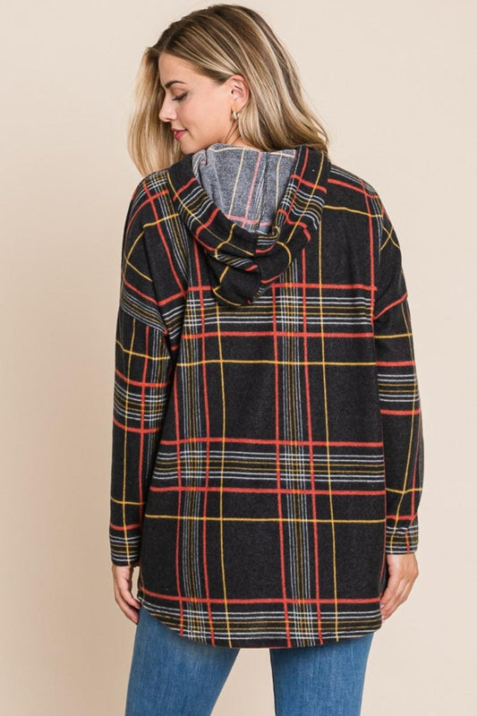 BOMBOM Drawstring Plaid Long Sleeve Hoodie