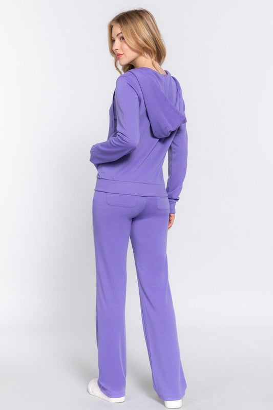 ACTIVE BASIC French Terry Zip Up Hoodie and Drawstring Pants Set