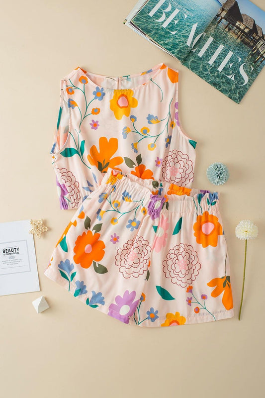 Stoc epuizatPrinted Round Neck Sleeveless Top and Shorts Set