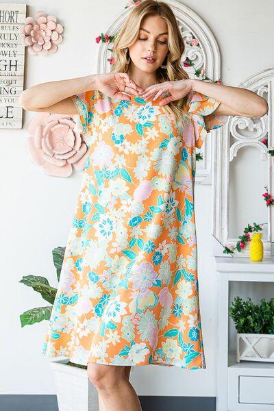 Heimish Full Size Ruffled Short Sleeve Floral Mini Dress Plus Size