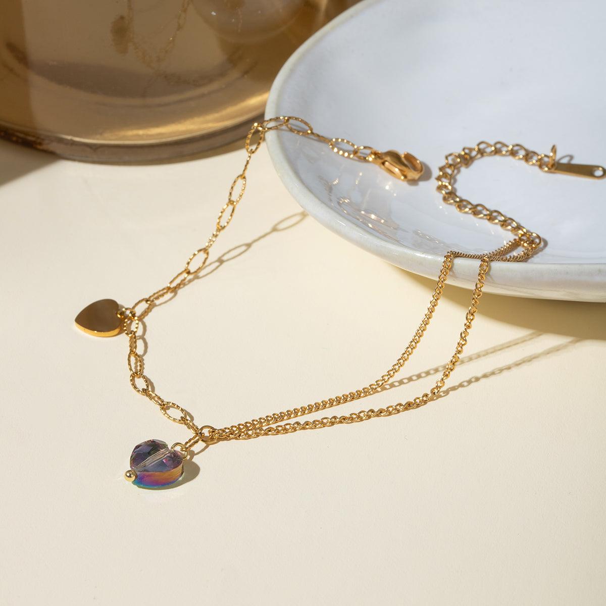 Stainless Steel Synthetic Crystal Heart Anklet Bracelet