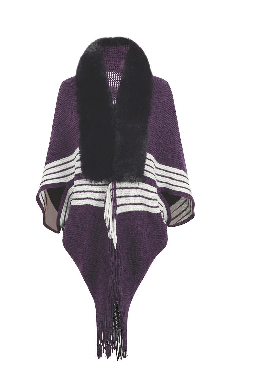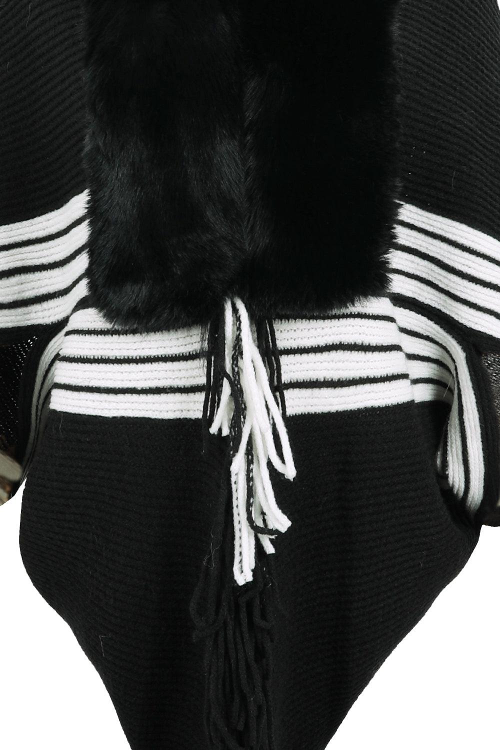 Striped Fringe Detail Long Sleeve Poncho