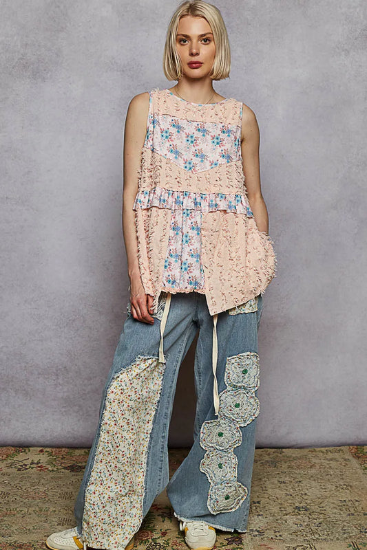 POL Floral Textured Round Neck Sleeveless Top