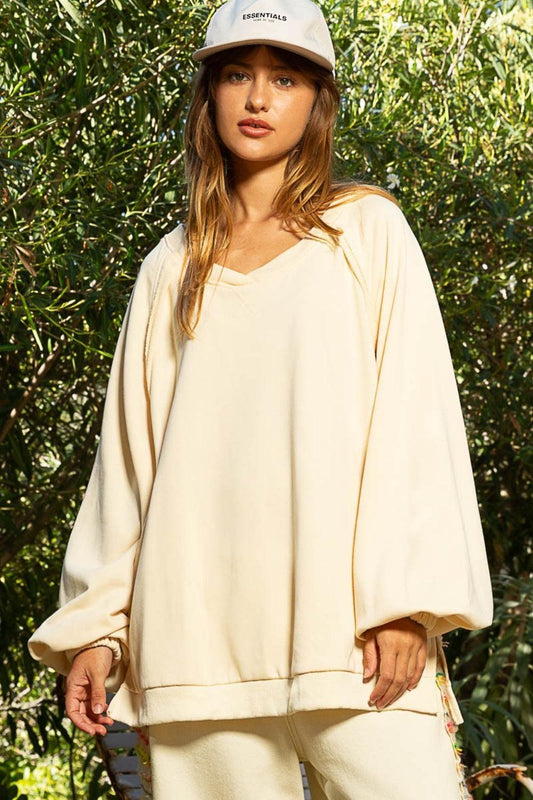 POL Back Cross Strap Detail Balloon Sleeve Sweatshirt