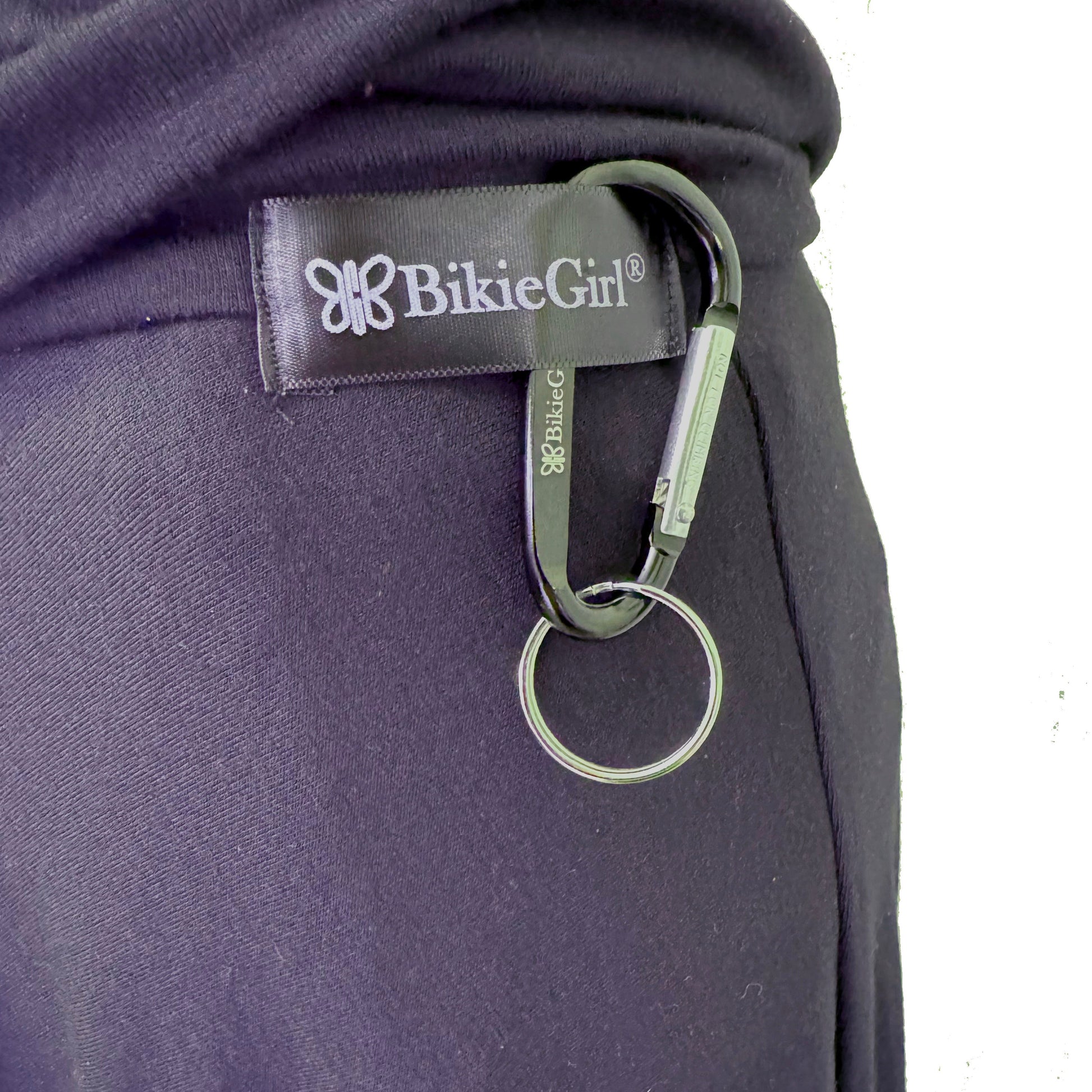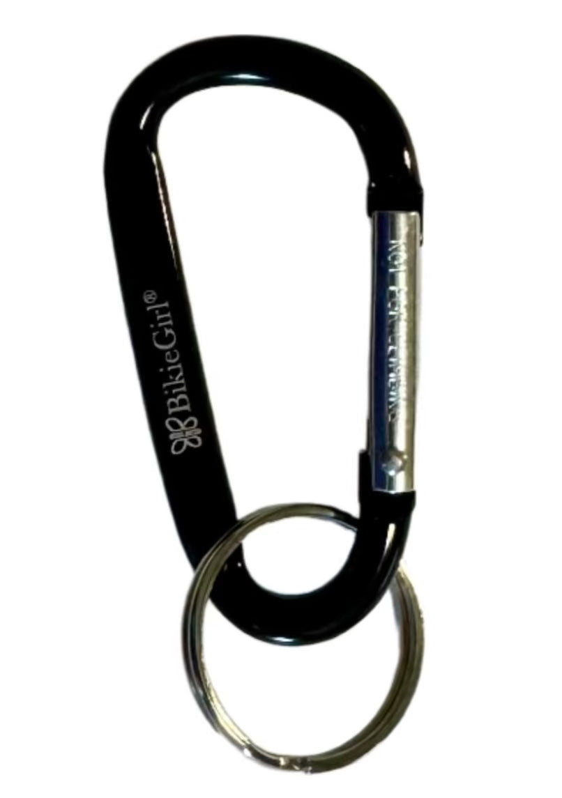 Hitch your skirt up for the ride and/or carry your keys with this handy carabiner. Simply hook it onto a belt loop (or the custom label on a Bikie Girl Comfy Flowy Skirt or Bike Date Dress). To raise the skirt hem while biking, you can hook it to the hemline or a safety pin attached to the inside of the hem (or the custom label at the hemline of a Bikie Girl Skirt or Dress). Included is a key ring that can be used to keep your house key and/or bike lock key within handy reach. Can also attach to your bike bag or purse or bike basket so you don't lose your keys while riding.