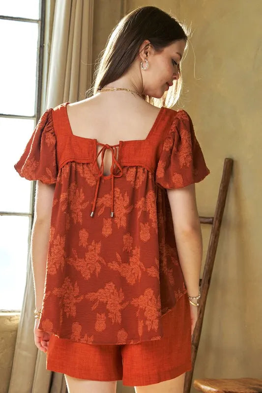 Davi & Dani Nature Printed Square Neck Puff Sleeve Blouse